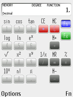 Almost all hardware buttons have two assigned labels. First label is for number input and the second one for operations. To switch between labels just press "Fn" button. Function mode is automatically switched off after the operation was entered.